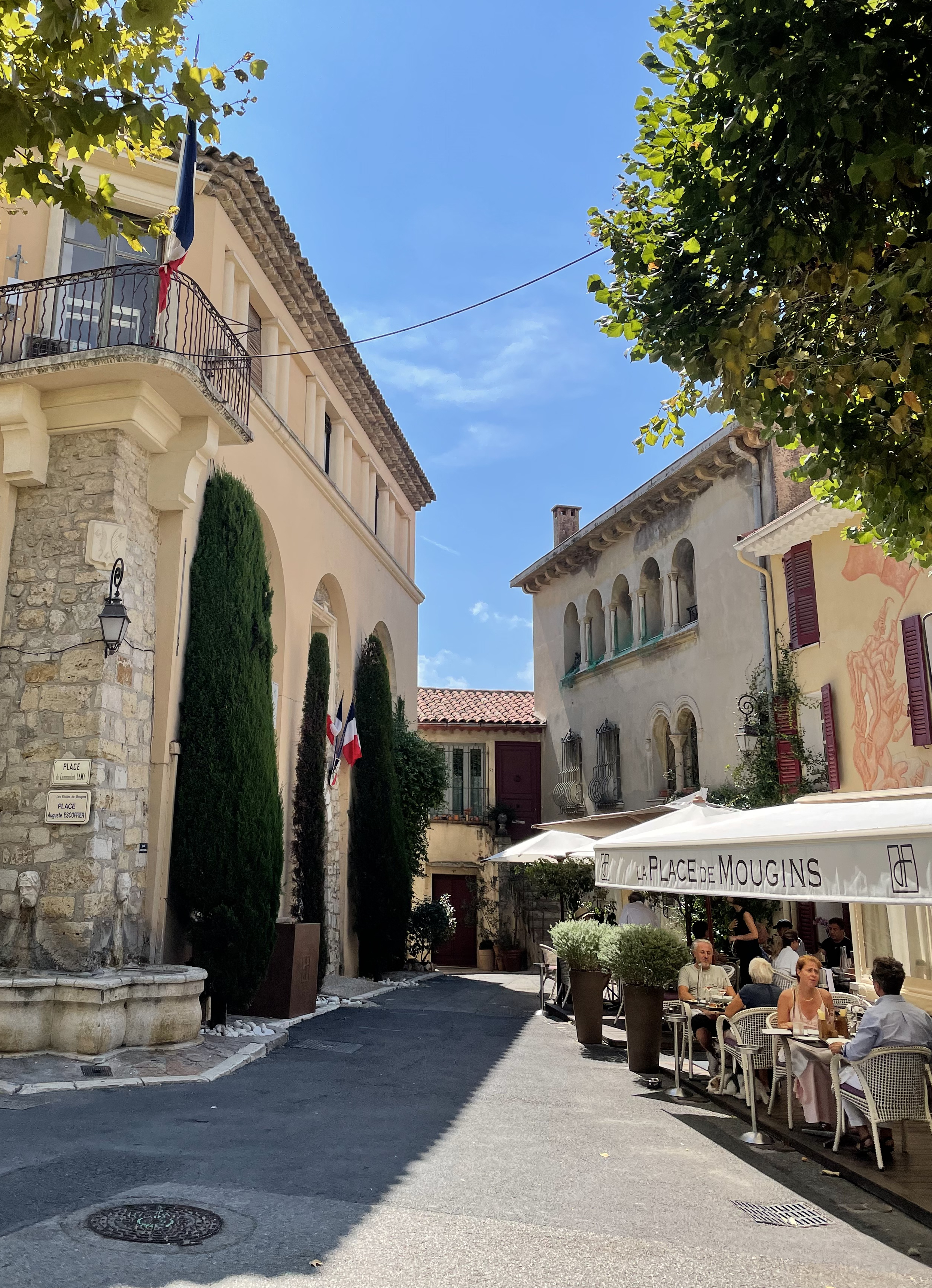- Mougins is a hilltop village located in the hinterland of Cannes, famous for its art galleries and Michelin-starred restaurants.
