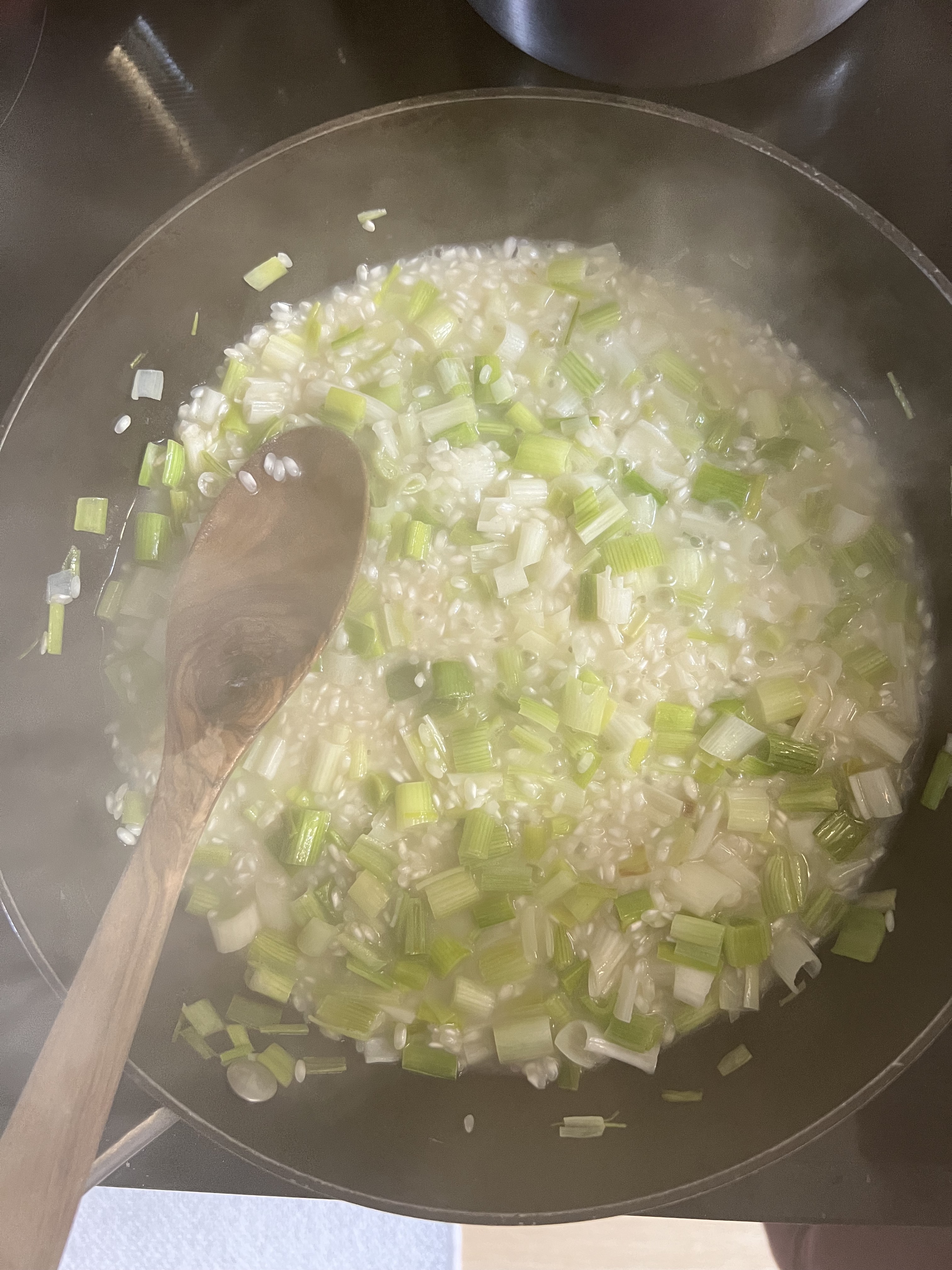 Here are some photos of how the risotto should look along the way, just in case you’ve never made a risotto before. When you feel that the rice is cooked through, take the extra few minutes to cook the remaining liquid out, this is the key to making risotto with the correct texture. You don’t want to see liquid draining out of the rice onto the plate.